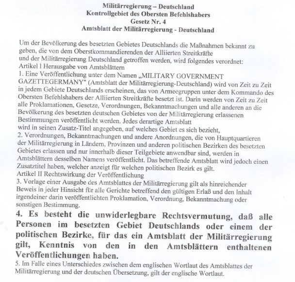 Kontrollratsgesetz Nr. 46 – Auflösung Preußen 1947 – 1955 von der UDSSR zurückgenommen. Der Alliierte Kontrollrat war ab August 1945 das oberste Regierungsorgan im besetzten Deutschland, zusammengesetzt aus den vier Militärgouverneuren der Siegermächte (USA, UdSSR, Großbritannien, Frankreich). Er traf einstimmige Entscheidungen für das gesamte Reichsgebiet, trat in Berlin zusammen und scheiterte 1948 durch den Kalten Krieg.