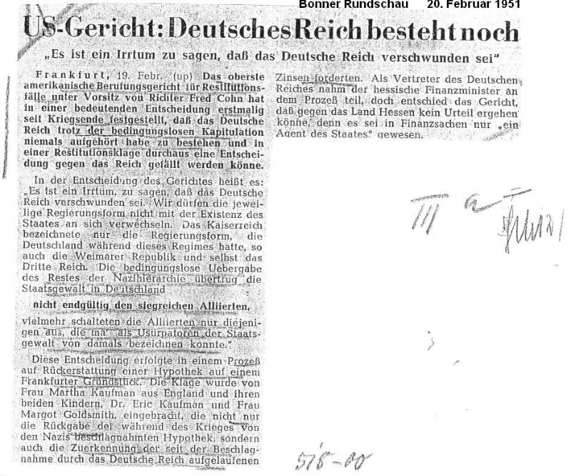 1951 US-Gericht – Deutsches Reich besteht noch- BN- Rundschau